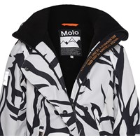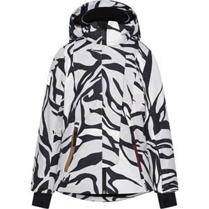 Pearson is a functionl and waterproof ski jacket in white with a graphic tiger print. Pearson has a detachable hood, a front zipper with an asymmetric placket, side pockets and adjustable sleeve openings with a snug wind flap with thumb holes. It has reflective stripes on the sleeves. The jacket is constructed in a windproof and waterproof quality that is breathable. It is lined in 3M™ Thinsulate™ and has high quality fleece in vulnerable places as well as taped seams. This product has a water resistant, PFC-free surface treatment (Does not contain, e.g. PFOS, PFOA, etc). Water column pressure: 10.000 mm and breathability: 8.000 mm g/m2/24hrs.