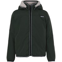 Wonderful, all-around jacket in a waterproof material. The jacket is in a dark green colour and has a detachable, fleece lined hood, a front zip, side pockets and reflectors at the top of the sleeve and at the back. The jacket is constructed in a windproof, breathable and waterproof quality. It has fleece in the hood and down the back as well as taped seams. This product has a water resistant, PFC-free surface treatment (Does not contain,e.g. PFOS, PFOA, etc). Water column pressure: 5.000 mm. breathable: 5.000 g/m2/24hr