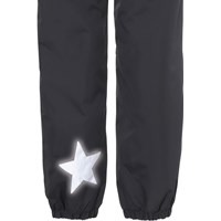 Windproof and waterproof rain trousers with an adjustable elastic waist, adjustable stirrups at the feet and Molo's iconic star reflector on the back to make them visible from a distance in the dark. In addition, the trousers are lined with a flat padding that make them soft and help retain heat. These trousers are good, all-around rain trousers for the cold months.