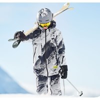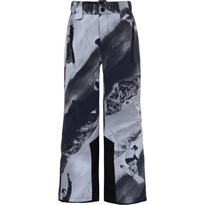 Jump Pro is a pair of functional, waterproof ski trousers in a snowboarder print in grey tones with a button and zipper closure at the waist. They have side pockets, adjustable leg openings with snow flaps and reinforcement on the inside of the legs. They are constructed in a wind and waterproof quality that is breathable. The trousers are lined in 3M™ Thinsulate™ and have high quality fleece in vulnerable places. They have taped seams. This product has a water resistant, PFC-free surface treatment (Does not contain, e.g. PFOS, PFOA, etc). Water column pressure: 10.000 mm. Breathability: 8.000 g/m2/24hrs. The trousers have straps with velcro for braces, which can be purchased.