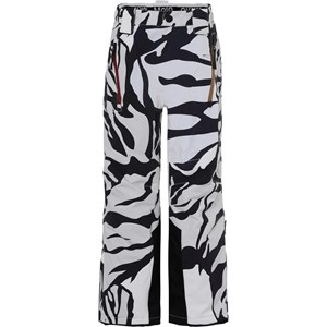 Jump Pro is a pair of functional, waterproof ski trousers in a tiger print with a button and zipper closure at the waist. They have side pockets, adjustable leg openings with snow flaps and reinforcement on the inside of the legs. They are constructed in a wind and waterproof quality that is breathable. The trousers are lined in 3M™ Thinsulate™ and have high quality fleece in vulnerable places. They have taped seams. This product has a water resistant, PFC-free surface treatment (Does not contain, e.g. PFOS, PFOA, etc). Water column pressure: 10.000 mm. Breathability: 8.000 g/m2/24hrs. The trousers have straps with velcro for braces, which can be purchased.