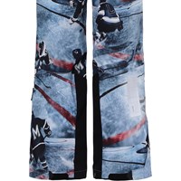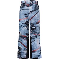 Jump Pro is a pair of functional, waterproof ski trousers in an ice hockey print in blue and bordeaux colours with a button and zipper closure at the waist. They have side pockets, adjustable leg openings with snow flaps and reinforcement on the inside of the legs. They are constructed in a wind and waterproof quality that is breathable. The trousers are lined in 3M™ Thinsulate™ and have high quality fleece in vulnerable places. They have taped seams. This product has a water resistant, PFC-free surface treatment (Does not contain, e.g. PFOS, PFOA, etc). Water column pressure: 10.000 mm. Breathability: 8.000 g/m2/24hrs. The trousers have straps with velcro for braces, which can be purchased.