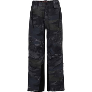 Jump Pro is a pair of functional, waterproof ski trousers in a dark camouflage print with a button and zipper closure at the waist. They have side pockets, adjustable leg openings with snow flaps and reinforcement on the inside of the legs. They are constructed in a wind and waterproof quality that is breathable. The trousers are lined in 3M™ Thinsulate™ and have high quality fleece in vulnerable places. They have taped seams. This product has a water resistant, PFC-free surface treatment (Does not contain, e.g. PFOS, PFOA, etc). Water column pressure: 10.000 mm. Breathability: 8.000 g/m2/24hrs. The trousers have straps with velcro for braces, which can be purchased.