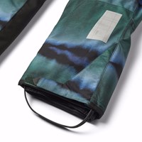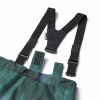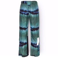 Wind- and waterproof trousers in recycled polyester in green and blue tie-dye. The trousers have button and zip closure, an adjustable internal elastic, belt loops for Molos braces (additional accessory), and an adjustable leg opening with snow gaiters and extra reinforcement between the legs. The trousers have pockets and a large reflector at the back to increase visibility in traffic. Additionally, the trousers are lined with fleece in exposed areas and lined with 3M™ Thinsulate™ to provide greater mobility for the child.