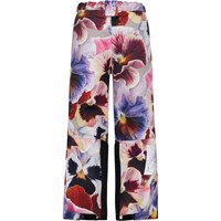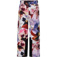 Jump Pro is a pair of waterproof pull on trousers that are extremely functional for skiing because they are very durable. This pair is in a print of large flowers in warm colours. The outer fabric is 51% recycled nylon from waste, while the lining and the interlining are 100% recycled. They have a snap and zipper at the waist, side pockets and adjustable leg openings with snow flaps and extra reinforcement on the inside of the legs. They are made in a windproof, waterproof and breathable fabric. This product has a water resistant, PFC-free surface treatment (Does not contain, e.g. PFOS, PFOA, etc). Water column pressure: 15.000 mm. breathable: 15.000 g/m2/24hr. They have straps with velcro for braces that can be purchased.