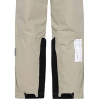 Jump Pro is a pair of waterproof, beige pull on trousers that are extremely functional for skiing because they are very durable. The outer fabric is 51% recycled nylon from waste, while the lining and the interlining are 100% recycled. They have a snap and zipper at the waist, side pockets and adjustable leg openings with snow flaps and extra reinforcement on the inside of the legs. They are made in a windproof, waterproof and breathable fabric. This product has a water resistant, PFC-free surface treatment (Does not contain, e.g. PFOS, PFOA, etc). Water column pressure: 15.000 mm. breathable: 15.000 g/m2/24hr. They have straps with velcro for braces that can be purchased.