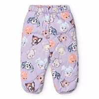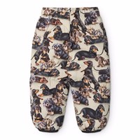 Water-repellent beige thermal trousers for the little ones with a print of dogs in black and brown shades. The trousers have a spacious fit, an elastic waist with a reversible adjustable elastic and a close-fitting leg opening. The trousers are made of recycled polyester with a water-repellent surface that is free of PFOS and PFOA. Combine this with a matching jacket for a warm and soft thermal set.