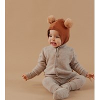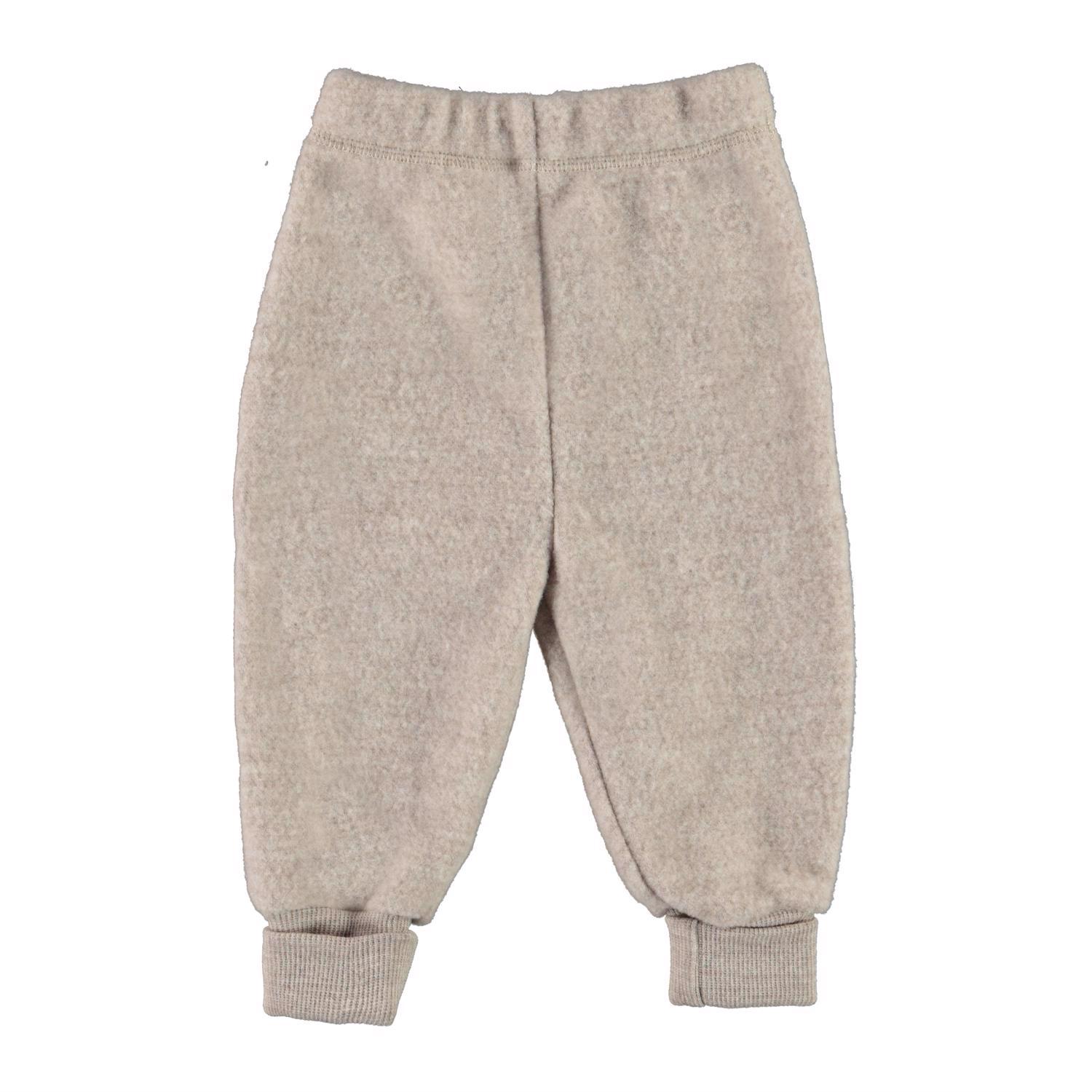 Ulmer is a pair of baby wool trousers in beige with roll up at the legs. They are in a roomy fit with an elastic waist.