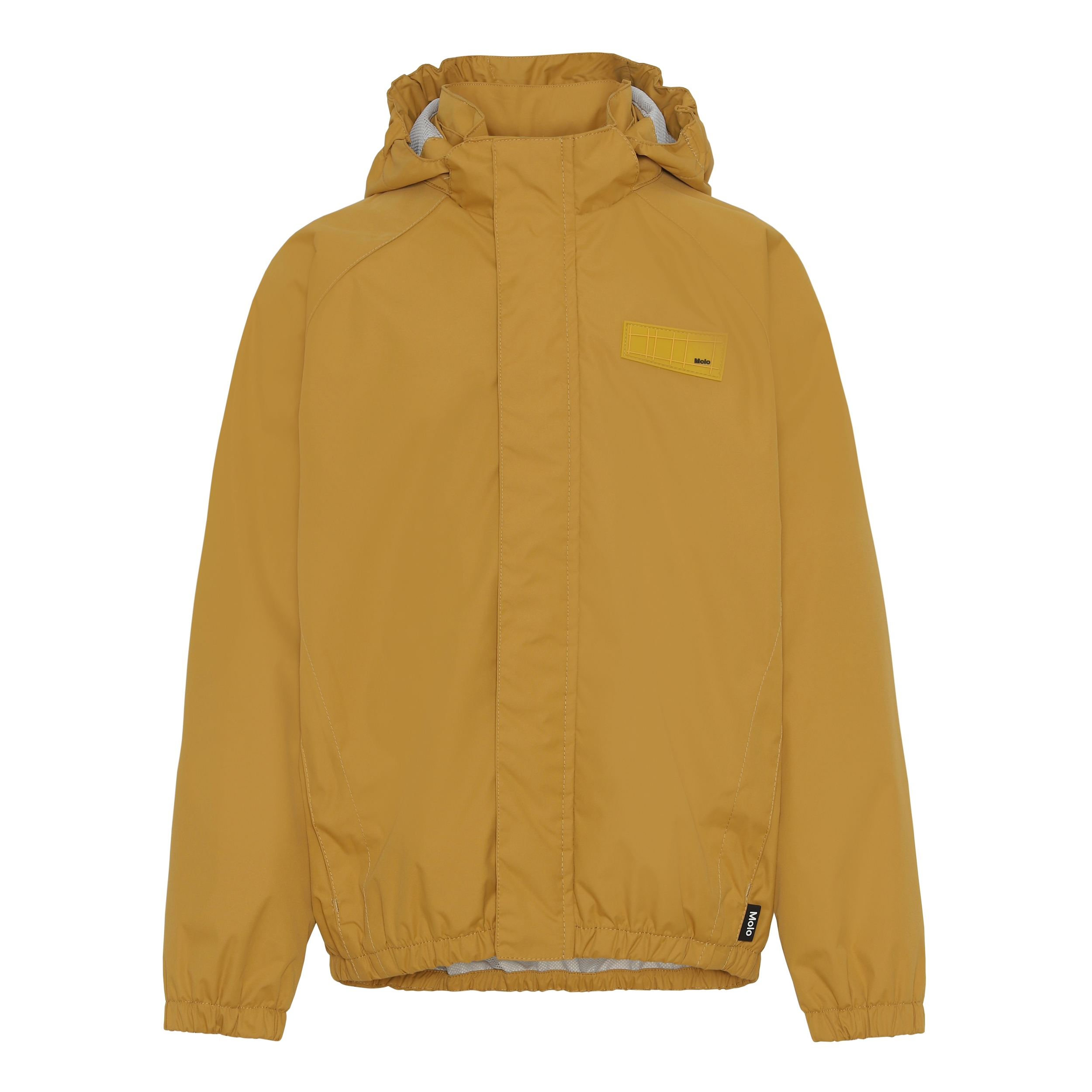 Waiton is a lightweight, functional rain jacket in a lovely honey colour with a nylon lining. Waiton has a covered zipper to protect against wind and rain, taped seams and a detachable hood and two front pockets. The jacket has molo's iconic star reflectors on the back for increased visibility in the dark. This product has a water resistant, PFC-free surface treatment (Does not contain, e.g. PFOS, PFOA, etc). Water column pressure: 5.000 mm. breathable: 5.000 g/m2/24hr.