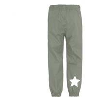 Waits is a pair of lightweight, functional rain trousers in 'Skate', which is a beautiful grey-green colour. The trousers have elastic at the leg openings and Molo's iconic star reflector on one leg. The rain trousers can be used in all sorts of weather because the fabric is water resistant and breathable. They have taped seams. This product has a water resistant, PFC-free surface treatment (Does not contain, e.g. PFOS, PFOA, etc). Water column pressure: 5.000 mm. breathable: 5.000 g/m2/24hr.