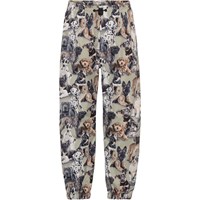 Waits is a lightweight and functional pair of rain trousers in a multi-coloured animal print. The trousers have taped seams, adjustable elastic at the waist and ankles and Molo's iconic star reflector on one leg. This product has a huge advantage in that it is breathable, so a high activity level won't make the trousers wet on the inside. This product has a water resistant, PFC-free surface treatment (Does not contain, e.g. PF OS, PFOA, etc). Water column pressure: 5.000 mm. Breathable: 5.000 g/m2/24hrs.