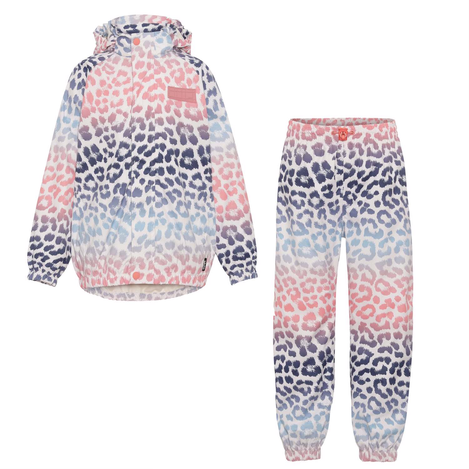 Whalley is a lightweight and functional rainwear set in a multi-coloured animal print. The rain jacket has a covered zip closure to protect against the wind and rain. It has taped seams, a detachable hood and two front pockets. The trousers have taped seams and adjustable elastic at the legs and waist. Both the rain jacket and the trousers have Molo's iconic star reflectors on the back. This rainwear set has a huge advantage in that it is breathable, so a high activity level won't make the trousers and jacket wet on the inside. This product has a water resistant, PFC-free surface treatment (Does not contain, e.g. PF OS, PFOA, etc). Water column pressure: 5.000 mm. breathable: 5.000 g/m2/24hr.