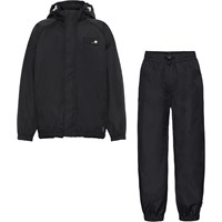 Whalley is a lightweight, functional rainwear set with black trousers and a black and white striped jacket. The jacket has a covered zipper to protect against wind and rain, taped seams, detachable hood and two front pockets. The trousers have elastic at the waist and legs. Both the jacket and the trousers have Molo's iconic star reflector on the back. This rainwear set has a water resistant, PFC-free surface treatment (Does not contain,e.g. PFOS, PFOA, etc). Water column pressure: 5.000 mm. breathable: 5.000 g/m2/24hr.