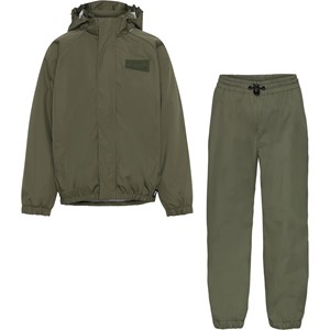 Whalley is a lightweight, functional rainwear set in khaki green. The jacket has a covered zipper to protect against wind and rain, taped seams, detachable hood and two front pockets. The trousers have elastic at the waist and legs. Both the jacket and the trousers have Molo's iconic star reflector on the back. This rainwear set has a water resistant, PFC-free surface treatment (Does not contain,e.g. PFOS, PFOA, etc). Water column pressure: 5.000 mm. breathable: 5.000 g/m2/24hr.