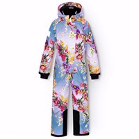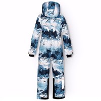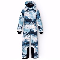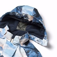 Snowsuit in recycled polyester for a cold winter or ski holiday with a winter landscape print in shades of blue. The snowsuit has a detachable lined hood with an extra elastic edge to keep it securely on the head and a zip with a flap to keep wind and water out. There is elastic at the waist, sleeves and leg openings to keep snow, rain and wind out. Additionally, the suit has an extra adjustment at the leg opening and uses a durable material on the inside, ensuring a perfect fit over ski boots or winter boots and extending its lifespan. It is lined with 3M™ Thinsulate™, making it lightweight and providing greater mobility for the child. The suit has front pockets, an inner pocket, and a small pocket on the sleeve for a lift pass, and all pockets have waterproof zippers. Features: Windproof, waterproof and breathable. Water column pressure: 20,000mm. Breathability: 20,000 g/m2/24h. Waterproof seams. 3M™ Thinsulate™ insulation. PFC-free (PFOS and PFOA). Reflective edges and reflectors on legs and arms to increase visibility in traffic. Removable hood, lined with fleece and a removable faux fur trim. Internal fleece lining at the knees, bottom and back for extra insulation in exposed areas. Snow gaiter at the leg opening and removable rubber boot strap. Fleece lining in pockets.