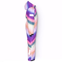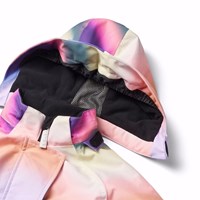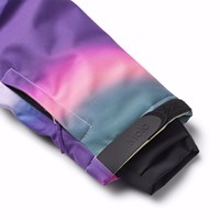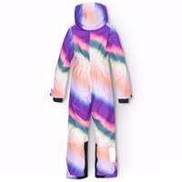 Snowsuit in recycled polyester with a multicoloured overflowing graffiti print. The snowsuit has a detachable lined hood with an extra elastic edge to keep it in place on the head, as well as a zip on the front with a flap to keep wind and water out. There is also elastic around the waist and wind and snow cuffs at the sleeves and leg openings to keep snow, rain, and wind out. Additionally, the snowsuit has an extra adjustment at the leg opening and uses a durable material on the inside, ensuring that the snowsuit fits perfectly over ski boots or winter boots and extends its lifespan. The snowsuit has reflectors on both the sleeves and legs to increase visibility in traffic. The snowsuit is lined with 3M™ Thinsulate™, which provides the child with greater mobility due to its lightweight. There are front pockets, an inner pocket, and a small pocket on the sleeve for a lift pass, all with waterproof zippers. Features: Windproof, waterproof, and breathable Water column pressure: 20,000mm. Breathability: 20,000 g/m2/24h Waterproof seams 3M™ Thinsulate™ insulation PFC-free (PFOS and PFOA) Reflectors on legs and arms to increase visibility in traffic Detachable hood with extra elastic edge Fleece lining on knees, bottom, and back for extra insulation in exposed areas Snow cuffs at sleeve and leg openings Fleece lining in pockets