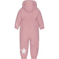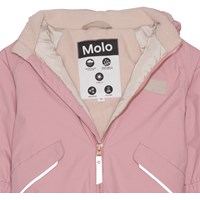 Unisex snowsuit for young children. It's perfect for everyday wear and active children. The snowsuit has many qualities like extremely high-water column pressure and breathability that keeps a child warm and dry in the cold months. The snowsuit is a part of Molo’s 'Outdoor Proof' collection, which is outerwear for more moderate winter weather. It lives up to Molo’s high standards for its outerwear with the same functional details and quality fabrics that Molo is known for. This snowsuit is, of course, also produced in responsibly recycled materials. This Hyde is in pink.