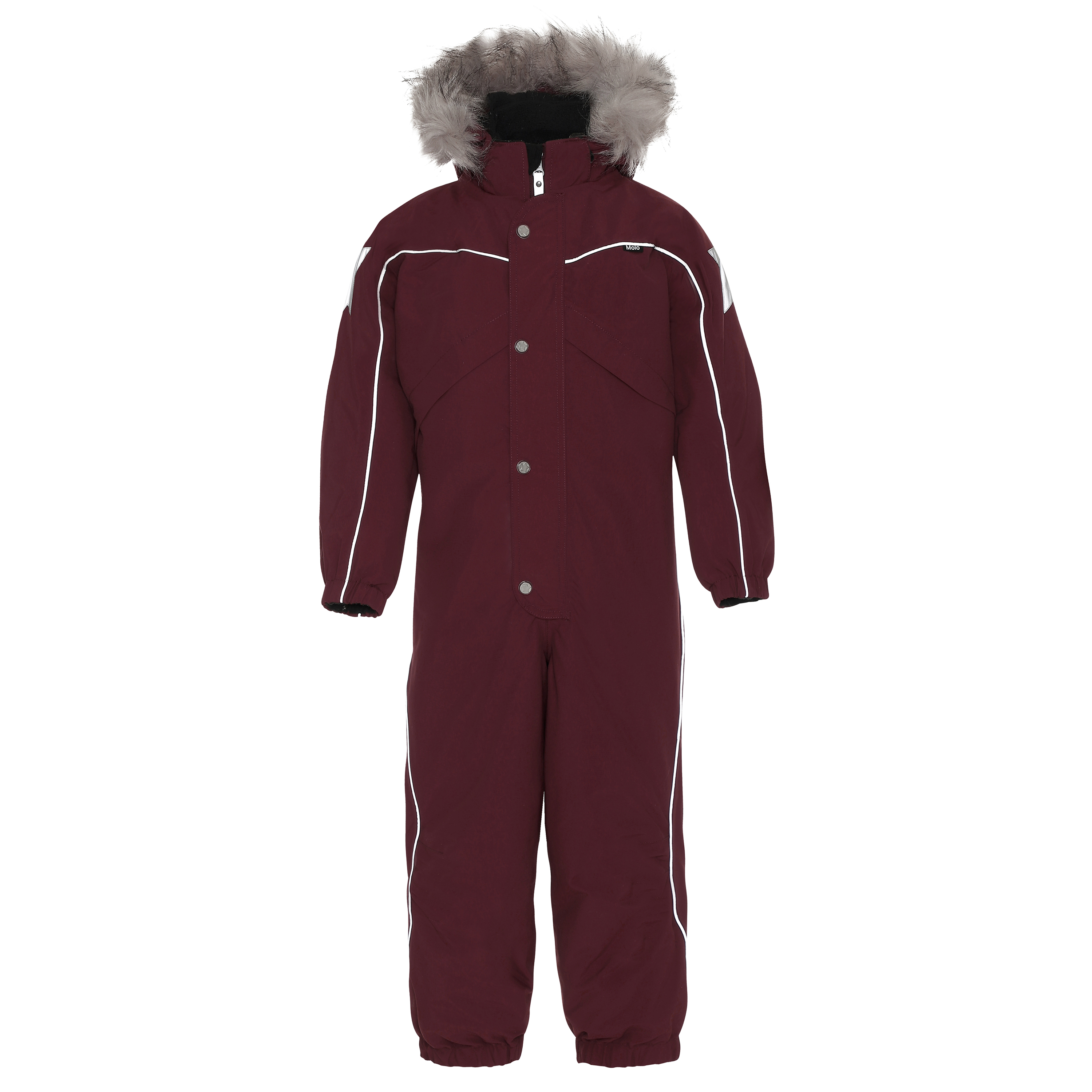 Polaris is a Molo favourite for really cold weather. It is a functional snowsuit in the color 'Cabernet' with reflective piping and Molo's iconic star reflectors on sleeves and legs. It has a faux fur collar. Polaris has a detachable hood, a covered zip front, elastic at the back, snow flaps at the legs and rubber stirrups. The snowsuit is constructed in windproof, waterproof and breathable fabric and lined in 3M™ Thinsulate™. It has high quality fleece at vulnerable places, and it has taped seams. This product has a water resistant, PFC-free surface treatment (Does not contain, e.g. PFOS, PFOA, etc). Because of this, it has received Best-in-Test status. Water column pressure: 10.000 mm. Breathable: 8.000 g/m2/24hr.