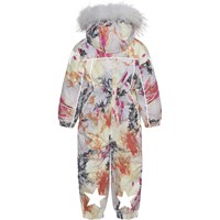 Polaris Fur is a Molo favourite when the weather turns really cold. Polaris, in addition to all its many well-known qualities, is now also made of partially recycled materials. This means the outer fabric is 51% recycled, while the lining and interlining are 100% recycled and made of recycled polyester. Polaris is a functional snowsuit in light blue with colourful branches. It has reflective piping and detachable faux fur trim. The snowsuit also has a detachable hood, a front zip closure with a placket, Molo's iconic star reflectors on the sleeves and legs. It has a snow flap at the legs and rubber stirrups for the feet. The snowsuit is made in a windproof, waterproof and breathable fabric and has taped seams. This product has a water resistant, PFC-free surface treatment (Does not contain, e.g. PFOS, PFOA, etc) and because of this, the snowsuit has been named 'Best-in-Test' . The water column pressure and breathability are greatly improved and are now: water coloumn pressure: 15.000 mm and breathable: 15.000 g/m2/24hr.