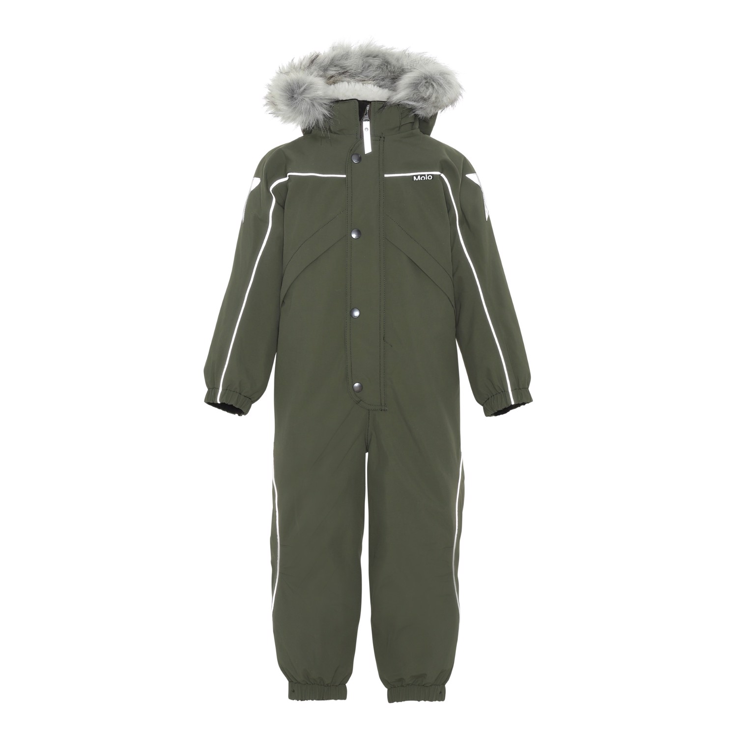 Polaris Fur is on of Molo''s favourites for really cold weather. Polaris is a functional snowsuit in green with reflective piping. It is perfect for extremely cold days but also ordinary winter days. The high level of breathability helps regulate a child''s body temperature so it does not become too cold or over heated. On warmer winter days, a child can wear the jacket with a thin under layer, but on extremely cold days, you can add an extra layer underneath. Polaris is also a good choice for less active moments. The snowsuit has reflector piping and a faux fur trim that is detachable. Polaris has a detachable hood, a covered front zip closure and Molo''s iconic star reflectors on the sleeves and legs. It has snow flaps at the legs and rubber stirrups. Polaris, in addition to all its other qualities, is now made from partially recycled materials. The outer fabric is made from 59% recycled nylon, the 3M™ Thinsulate™ padding from 83% recycled polyester and the lining from 100% recycled polyester. The snowsuit is windproof, waterproof and breathable and has taped seams. This product has a water-resistant, PFC-free surface treatment (Does not contain, e.g. PFOS, PFOA, etc). Because of this, it has received Best-in-Test status. The water column pressure and breathability have been imporved and are now up to 15.000 mm column pressure and breathability at 15.000 g/m2/24hr.