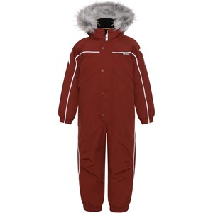 Polaris Fur is a Molo favourite when the weather turns really cold. Polaris, in addition to all its many well-known qualities, is now also made of partially recycled materials. This means the outer fabric is 51% recycled, while the lining and interlining are 100% recycled and made of recycled polyester. Polaris is a functional snowsuit in dark red. It has reflective piping and detachable fur trim. The snowsuit also has a detachable hood, a front zip closure with a placket, Molo's iconic star reflectors on the sleeves and legs. It has a snow flap at the legs and rubber stirrups for the feet. The snowsuit is made in a windproof, waterproof and breathable fabric and has taped seams. This product has a water resistant, PFC-free surface treatment (Does not contain, e.g. PFOS, PFOA, etc) and because of this, the snowsuit has been named 'Best-in-Test' . The water column pressure and breathability are greatly improved and are now: water coloumn pressure: 15.000 mm and breathable: 15.000 g/m2/24hr.