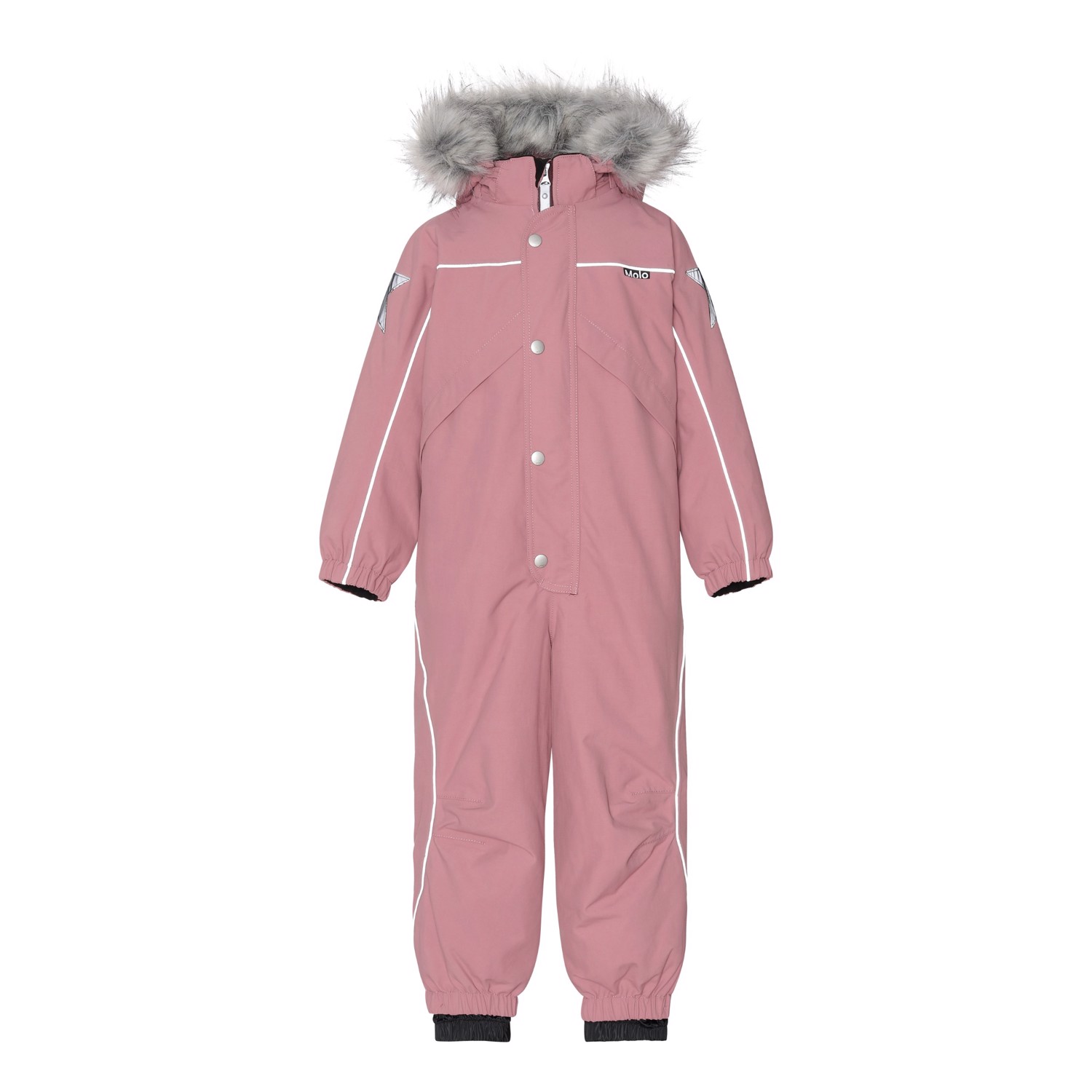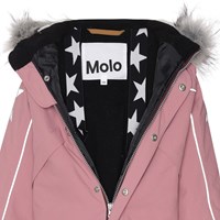 Polaris Fur is on of Molo''s favourites for really cold weather. Polaris is a functional snowsuit in a rose colour with reflective piping. It is perfect for extremely cold days but also ordinary winter days. The high level of breathability helps regulate a child''s body temperature so it does not become too cold or over heated. On warmer winter days, a child can wear the jacket with a thin under layer, but on extremely cold days, you can add an extra layer underneath. Polaris is also a good choice for less active moments. The snowsuit has reflector piping and a faux fur trim that is detachable. Polaris has a detachable hood, a covered front zip closure and Molo''s iconic star reflectors on the sleeves and legs. It has snow flaps at the legs and rubber stirrups. Polaris, in addition to all its other qualities, is now made from partially recycled materials. The outer fabric is made from 59% recycled nylon, the 3M™ Thinsulate™ padding from 83% recycled polyester and the lining from 100% recycled polyester. The snowsuit is windproof, waterproof and breathable and has taped seams. This product has a water-resistant, PFC-free surface treatment (Does not contain, e.g. PFOS, PFOA, etc). Because of this, it has received Best-in-Test status. The water column pressure and breathability have been imporved and are now up to 15.000 mm column pressure and breathability at 15.000 g/m2/24hr.