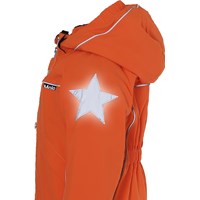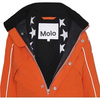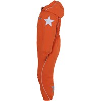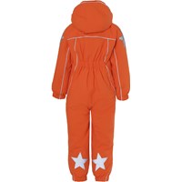 Polaris is a Molo favourite for cold weather, and it's now been recycled! Polaris is a functional snowsuit in orange with reflective piping and Molo's iconic star reflectors on the sleeves and legs. Polaris has a detachable hood, a front zip closure with placket, elastic at the back, a snow flap at the legs and rubber stirrups under the feet. The snowsuit is windproof and waterproof and has breathable 3M™ Thinsulate™. It has high quality fleece in vulnerable places as well as taped seams. The outer material is constructed in 59% recycled nylon from waste. This product has a water resistant, PFC-free surface treatment (Does not contain, e.g. PFOS, PFOA, etc). Water column pressure: 15.000 mm. Breathability: 15.000 g/m2/24hrs.