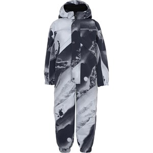 Polaris is a Molo favourite for cold weather. Polaris is a functional snowsuit in a snowboard print in grey tones with reflective piping and Molo's iconic star reflectors on the sleeves and legs. Polaris has a detachable hood, a front zip closure with placket, elastic at the back, snow flaps at the leg openings and rubber stirrups under the feet. The snowsuit is constructed in a windproof, waterproof and breathable quality with 3M™ Thinsulate™. It has high quality fleece in vulnerable places and taped seams. This product has a water resistant, PFC-free surface treatment (Does not contain, e.g. PFOS, PFOA, etc) and because of this, has won 'Best-in-Test'. Its water column pressure and breathability has been improved and is now: water column pressure 15.000 mm and breathability: 15.000 g/m2/24hrs.