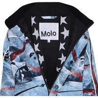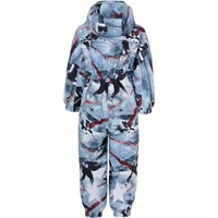 Polaris is a Molo favourite for cold weather. Polaris is a functional snowsuit in an ice hockey print in blue and bordeaux with reflective piping and Molo's iconic star reflectors on the sleeves and legs. Polaris has a detachable hood, a front zip closure with placket, elastic at the back, snow flaps at the leg openings and rubber stirrups under the feet. The snowsuit is constructed in a windproof, waterproof and breathable quality with 3M™ Thinsulate™. It has high quality fleece in vulnerable places and taped seams. This product has a water resistant, PFC-free surface treatment (Does not contain, e.g. PFOS, PFOA, etc) and because of this, has won 'Best-in-Test'. Its water column pressure and breathability has been improved and is now: water column pressure 15.000 mm and breathability: 15.000 g/m2/24hrs.