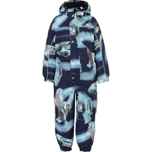 Polaris is a Molo favourite for cold weather. Polaris is a functional snowsuit in a print of futuristic time machines. It has reflective piping and Molo's iconic star reflectors on the sleeves and legs. Polaris has a detachable hood, a front zip closure with placket, elastic at the back, snow flaps at the leg openings and rubber stirrups under the feet. The snowsuit is constructed in a windproof, waterproof and breathable quality with 3M™ Thinsulate™. It has high quality fleece in vulnerable places and taped seams. This product has a water resistant, PFC-free surface treatment (Does not contain, e.g. PFOS, PFOA, etc) and because of this, has won 'Best-in-Test'. Its water column pressure and breathability has been improved and is now: water column pressure 15.000 mm and breathability: 15.000 g/m2/24hrs.