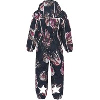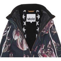 Polaris Fur is on of Molo''s favourites for really cold weather. Polaris is a functional snowsuit in black with a print of tulips and with reflective piping. It is perfect for extremely cold days but also ordinary winter days. The high level of breathability helps regulate a child''s body temperature so it does not become too cold or over heated. On warmer winter days, a child can wear the jacket with a thin under layer, but on extremely cold days, you can add an extra layer underneath. Polaris is also a good choice for less active moments. The snowsuit has reflector piping and a faux fur trim that is detachable. Polaris has a detachable hood, a covered front zip closure and Molo''s iconic star reflectors on the sleeves and legs. It has snow flaps at the legs and rubber stirrups. Polaris, in addition to all its other qualities, is now made from partially recycled materials. The outer fabric is made from 45% recycled polyester, the 3M™ Thinsulate™ padding from 83% recycled polyester and the lining from 100% recycled polyester. The snowsuit is windproof, waterproof and breathable and has taped seams. This product has a water-resistant, PFC-free surface treatment (Does not contain, e.g. PFOS, PFOA, etc). Because of this, it has received Best-in-Test status. The water column pressure and breathability have been imporved and are now up to 15.000 mm column pressure and breathability at 15.000 g/m2/24hr.