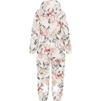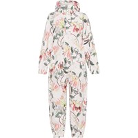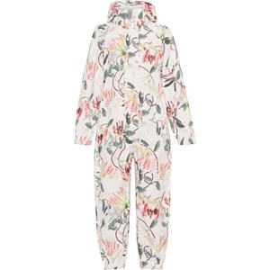 Functional suit that is lightweight and unlined with a lovely floral print. The suit is in a sustainable fabric that is made of 100% recycled polyester from plastic bottles. It has a detachable hood, a covered front zip closure to protect against the wind and rain and elastic at the back waist, at the sleeves and legs. It also has various reflectors. This suit is perfect for all types of weather because the fabric is waterproof and breathable and has taped seams. This product has a water resistant, PFC-free surface treatment (Does not contain, e.g. PF OS, PFOA, etc). Water column pressure: 5.000 mm. breathable: 5.000 g/m2/24hr.
