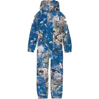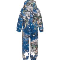 Polly is a functional suit, and this version is lightweight and unlined in blue with an animal print. The suit has a detachable hood, a covered zip front closure to protect against the wind and rain and elastic at the back, sleeves and and legs. It has various reflectors. This suit is perfect for all types of weather because the fabric is waterproof and breathable and has taped seams. This product has a water-resistant, PFC-free surface treatment (Does not contain, e.g. PFOS, PFOA, etc). Water column pressure: 12.000 mm. breathable: 8.000 g/m2/24hr.