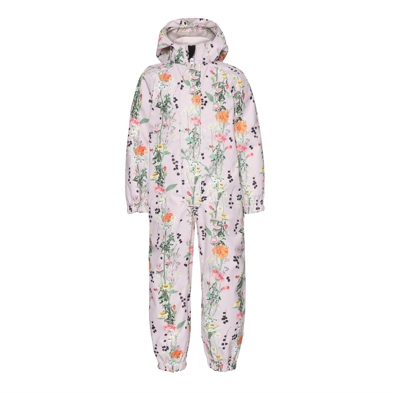 Polly is a functional suit with a floral print. It is appropriate to wear in spring and fall, where the weather changes quickly and often, and it is particularly perfect in rainy and windy weather. The suit is comfortable because it is breathable. It has a detachable hood and a front covered zip that protects against the wind and rain. It has elastic in the back waist and various reflectors. This product has a water resistant, PFC-free surface treatment (Does not contain, e.g. PFOS, PFOA, etc). Water column pressure: 5.000 mm. breathable: 5.000 g/m2/24hr.