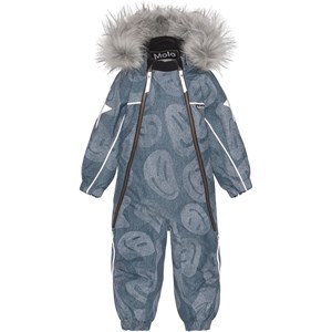 Pyxis is one of Molo''s most well-known and beloved snowsuits that is perfect for young children. The snowsuit has many features, like extremely high-water column pressure and breathability, and with its beautiful prints and colours, it''s a sure winner every year. Molo doesn''t compromise on any details when it comes to this snowsuit, and it is, of course, also produced in responsibly recycled materials. This Pyxis is in a denim blue with different shapes of smiley faces.