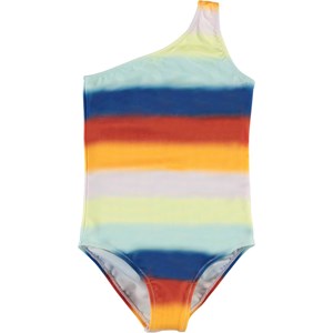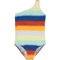 Nai is an asymmetrical swimsuit with wide, soft rainbow stripes. The suit has a single shoulder strap. Molo's swimwear has a UV protection of 50+. The product is CE-marked and tested according to standard EN-13758-1.
