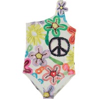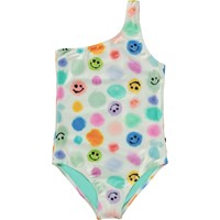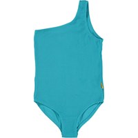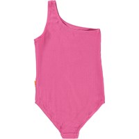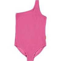 One shoulder swimsuit in pink with a wavy texture in a nylon/elastane blend. The stretchy fabric makes the suit extremely comfortable and easy to slip on and off. It offers a high level of 50+ UV protection from the sun. The product is CE-marked and tested according to standard EN-13758-1.