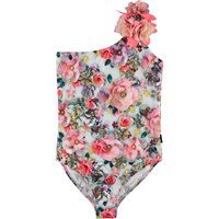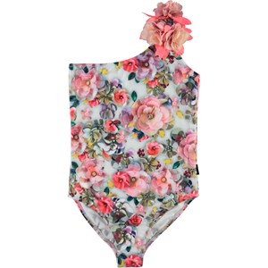 Nai is one of Molo''s new swimsuits that is asymmetric and comes in a sequined flower print. The swimsuit has a single shoulder strap with a flower applique. Molo''s swimwear has a UV protection of 50+. The product is CE-marked and tested according to standard EN-13758-1.