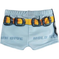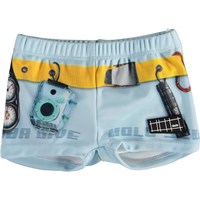 Nansen is a pair of short swim trunks for babies and small children. They are light blue with a print of diving gear. They have an elastic waist, are easy to move around in and have an extra inner layer to ensure that the trunks don't leak. Molo's swimwear has a UV protection of 50+. The product is CE-marked and tested according to standard EN-13758-1.