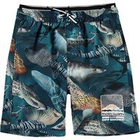 Neal is a pair of Molo swim trunks that are slightly longer and have a loose fit with a print of sharks in different animal prints. Neal has an elastic band with a cool printed logo. Molo's swimwear has a UV protection of 50+. The product is CE-marked and tested according to standard EN-13758-1.