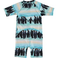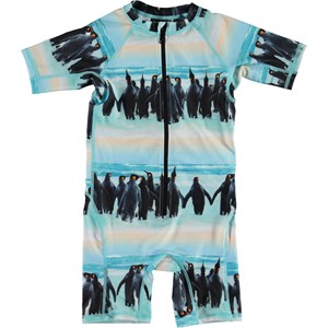 Neka is a practical UV swimsuit in the 'Penguin Stripe' print. The swimsuit has a long zipper on the front and is constructed in an elastic fabric that makes it easy to get on and off and makes it easy to move around in. The swimsuit covers most of the upper arms and legs, protecting the areas where children typically get sunburned. Molo's swimwear has 50+ UV protection. The product is CE-marked and tested according to standard EN-13758-1.