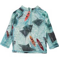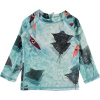 Nemo is a long sleeve UV rashguard for little kids to protect against the sun''s harmful rays. All of Molo''s swimwear has a UV protection of 50+. This Nemo style has a print of stingrays that swim under the ocean''s surface. The top is lightweight and comfortable and easy to move around in. Molo offers bottoms that match this top. The product is CE-marked and tested according to standard EN-13758-1.