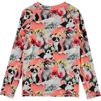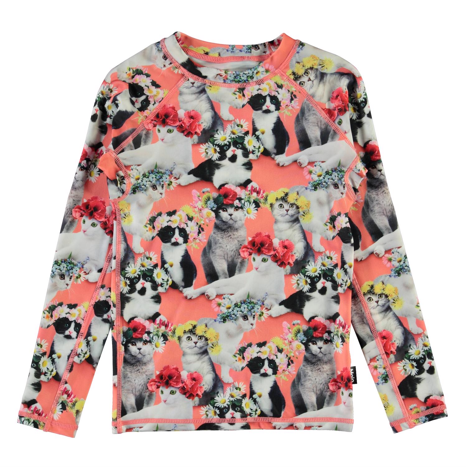 Neptune LS is a fabulous UV rashguard with long sleeves and a humorous print of cats with floral wreaths on their heads. It protects against the sun''s harmful rays. The top is lightweight and comfortable and easy to move around in. Wear the top with matching shorts for a cool, surfer look. Molo''s swimwear has a UV protection of 50+. The product is CE-marked and tested according to standard EN-13758-1.