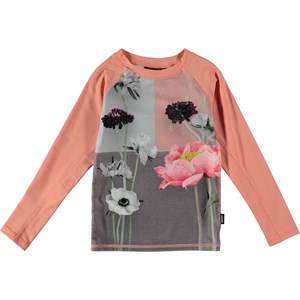 Long sleeve rash guard for swimming and protection against the sun's harmful rays. The top has a UV protection of 40+. The top is lightweight, comfortable and easy to move around in. There is a matching bottom in the same print.