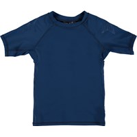 "Dark blue rashguard that protects against the sun's harmful rays with +50 UV protection that all Molo's swimwear has. It is comfortable and lightweight to ensure easy movement. Wear it with trunks for a cool beach look. The product is CE-marked and tested according to standard EN-13758-1.