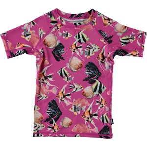Neptune is a fabulous UV rashguard that protects against the sun''s harmful rays. This Neptune style is in a beautiful fuchsia with a fish print. The top is lightweight and comfortable and easy to move around in. Wear the top with matching shorts for a cool, surfer look. Molo''s swimwear has a UV protection of 50+. The product is CE-marked and tested according to standard EN-13758-1.
