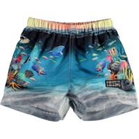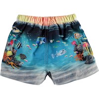 Welcome to a harmonious, colourful world of fish and coral, found under the sea on the print on Molo's Newton swim trunks. The trunks are easy to move around in and have wide legs. Wear the swim trunks with a matching t-shirt. Molo's swimwear has a UV protection of 50+. The product is CE-marked and tested according to standard EN-13758-1.