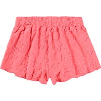 Pink swim shorts with a citrus pattern for active children, with UV50+ protection. It has a loose fit, inner shorts, and elastic and drawstring at the waist for easy on and off.