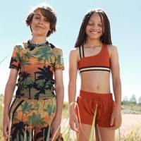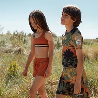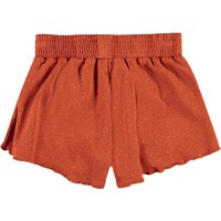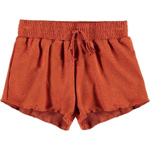 Nicci is a pair of short swim trunks in rust red with a lovely golden thread running through the fabric. Nicci has an elastic waist with ties. wear the trunks with a matching t-shirt or bikini top for a cool surfer look. Molo's swimwear has a UV protection of 50+. The product is CE-marked and tested according to standard EN-13758-1.