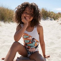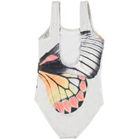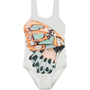 Nika is a classic swimsuit with wide shoulder straps. This Nika is in white with a graphic butterfly print. Molo's swimwear has a UV protection of 50+. The product is CE-marked and tested according to standard EN-13758-1.